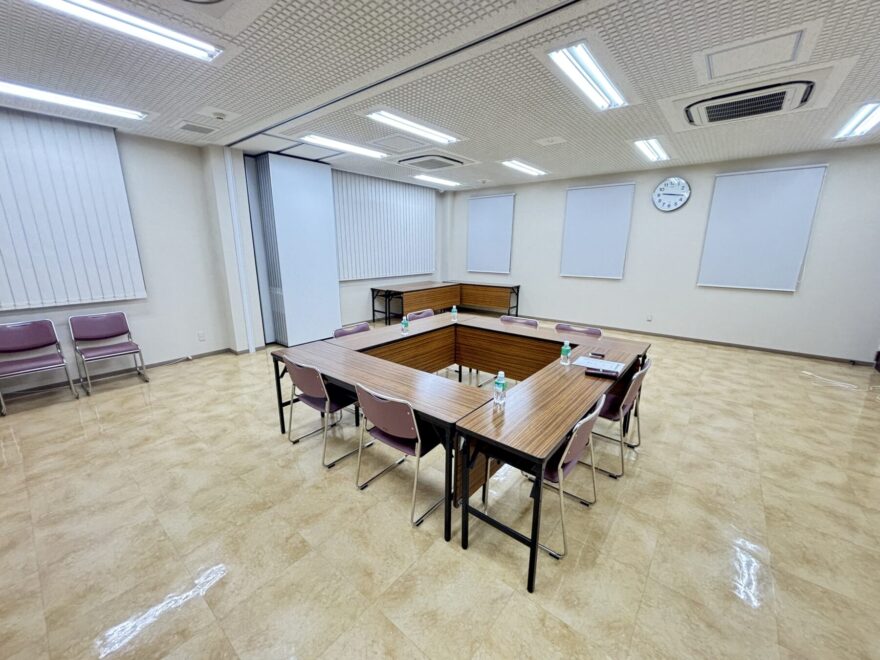 決済場所は2階にございます会議室をご用意していただきました。これがまた広い!下の画像にもありますが、20人ぐらいは入れる広さでコロナ化の時は密接しないから逆に安心して決済が可能であったかと思いました。